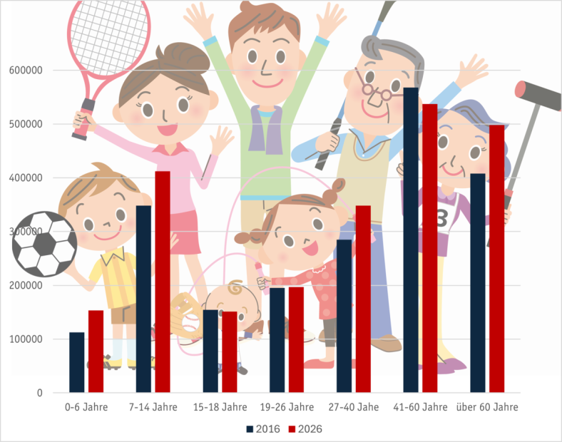 Noch immer ist der Vereinssport eher männlich geprägt: Obwohl der Frauenanteil gegenüber 2016 um fast einen Prozentpunkt gestiegen ist (2026: 41 Prozent), stellen die Männer mit 58,6 Prozent noch immer die Mehrheit. Für die aktuelle Bestandserhebung wurden außerdem 769 diverse Personen sowie 8.949 Personen ohne Geschlechtseintrag gemeldet. Die letzte Zahl betrachtet man beim Landessportbund jedoch als wenig aussagekräftig: „Der genaue Blick auf die Statistik zeigt, dass einzelne Vereine ihren Mitgliedern bei der Erhebung einfach keinem Geschlecht zugeordnet haben, diese Zahl ist also irreführend“, schreibt der Verband.
