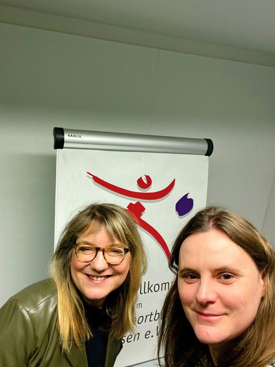 Sportjournalistin Sonja Pahl (links) mit Host Carolin Strohbehn während der Podcast-Aufnahme im lsb h. Foto: Sonja Pahl
