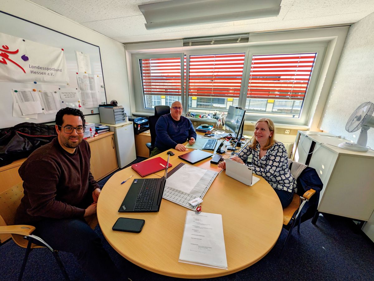 Ulrike Ristau hat als Vizepräsidentin Vereinsmanagement die Nachfolge von Dr. Frank Weller angetreten, der kurz nach dem Sportbundtag im September 2025 zurückgetreten war. Zusammen mit Geschäftsbereichsleiter Steffen Kipper (Mitte) und Sebastian Klein, Referent für juristische Angelegenheiten, ist sie regelmäßig im Austausch.