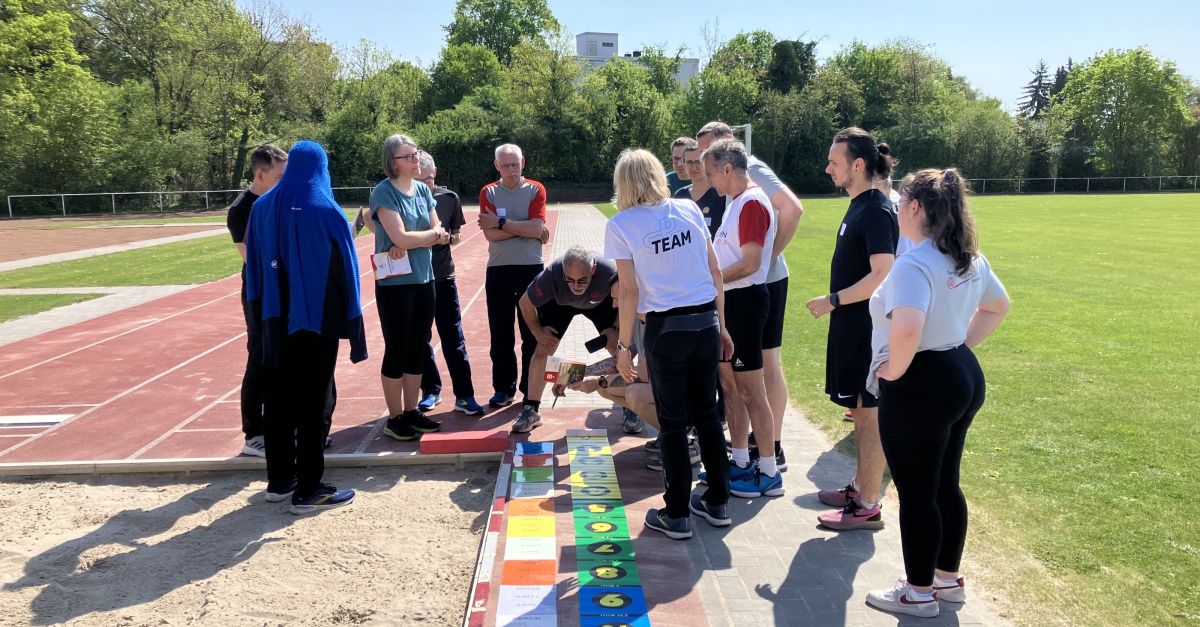 Anschließend ging es auf den angrenzenden Sportplatz der Gemeinde Kriftel, wo die angehenden Prüferinnen und Prüfer ihr Wissen direkt in die Praxis umsetzen konnten. Im Fokus standen zentrale Fragen der Organisation und Durchführung: Wie plant man eine reibungslose Sportabzeichen-Abnahme? Worauf ist bei den vielfältigen Disziplinen des Leistungskatalogs zu achten? Und wie werden einzelne Übungen korrekt aufgebaut und bewertet – etwa der Wurfsektor oder der Zonen-Weitsprung bei Kindern?