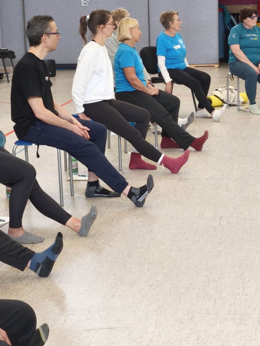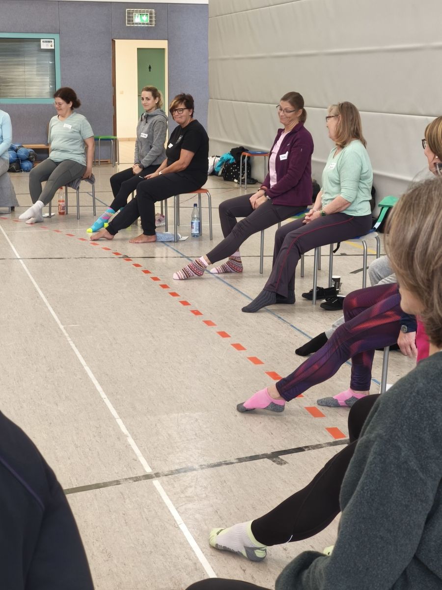 Der für die erkrankte Referentin kurzfristig eingesprungene Referent Florian Thimm, Fachreferent im Rehabilitationssport, trug unseren 41 Teilnehmer*innen zunächst einen Vortrag über die allgemeine Fußgesundheit und spezifischen Fußkrankheiten sehr informativ und kurzweilig vor.