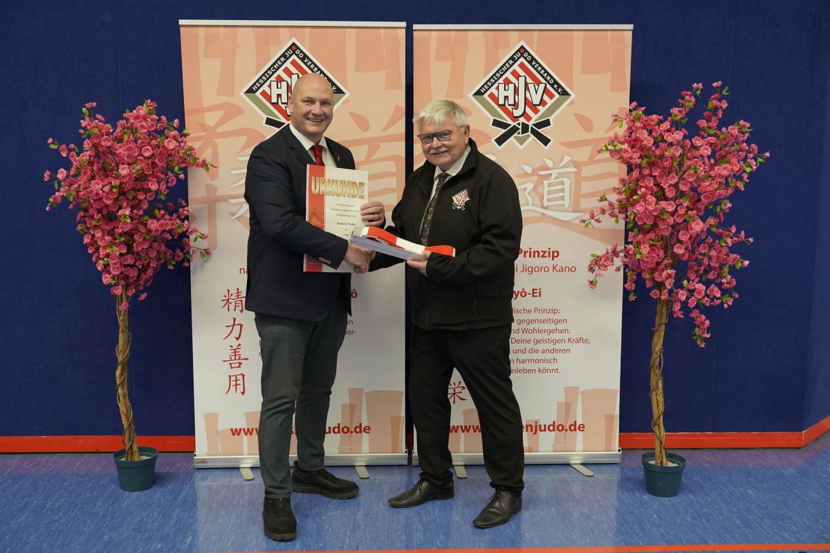 Für seine höchst annerkennenswerten, fachlichen Verdienste im HJV und darüber hinaus verleiht der Deutsche Judo-Bund an Michaelo Walter den 6. Dan.