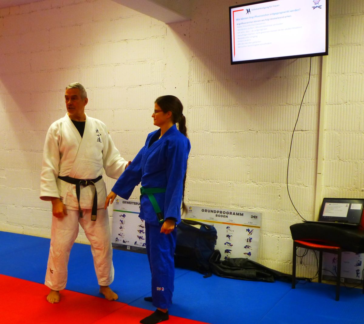 Im theoretischen Teil der Schulung wurden Präventionsstrategien, Selbstbehauptungstechniken und Handlungsmöglichkeiten vermittelt. Themen waren unter anderem: