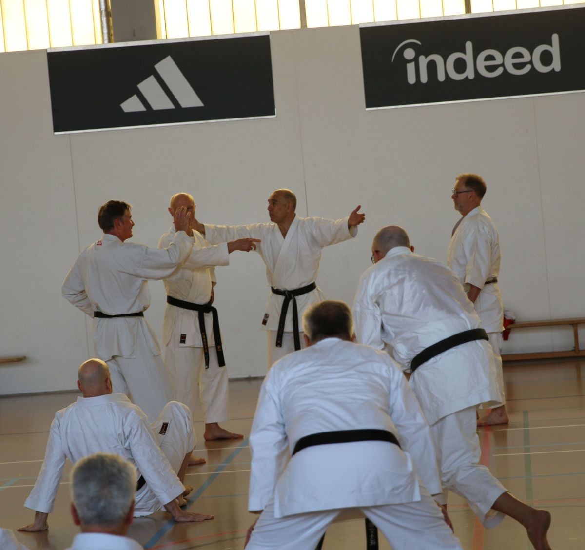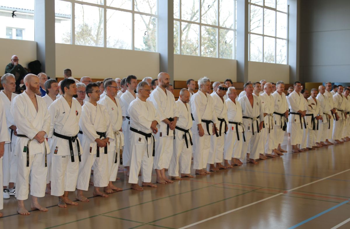 Mehr als 90 Karateka sind dem Aufruf gefolgt. Der Lehrgang stand diesmal ganz im Zeichen des Kumite, insbesondere der Bein-Gleitbewegungen Yori-Ashi/Suri-Ashi, sowie den Faust-Techniken Kizami-Zuki und Gyaku-Zuki. Mit viel Engagement und angeregten Diskussionen wurden die einzelnen Sequenzen verdeutlicht und aus verschiedenen Perspektiven beleuchtet. Die Teilnehmer zeigten große Motivation bei der Umsetzung und nutzten die Gelegenheit, ihr Wissen in diesen Bereichen zu vertiefen.